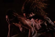 Plesači kreću u međusobno odmjeravanje, neku vrstu zagrljaja uz igru dominacije i nježnosti u kojoj su međusobni odnosi više naglašeni dugotrajnim pogledima i pozicioniranjem u prostoru. Oni se isprepliću u čvrstim i sporim, gotovo kontorzijskim zagrljajima i pokretima. Tima kao da naglašavaju izmjenu mira i tenzije zbog društvene nepriličnosti njihove veze ...pročitajte cijeli tekst...